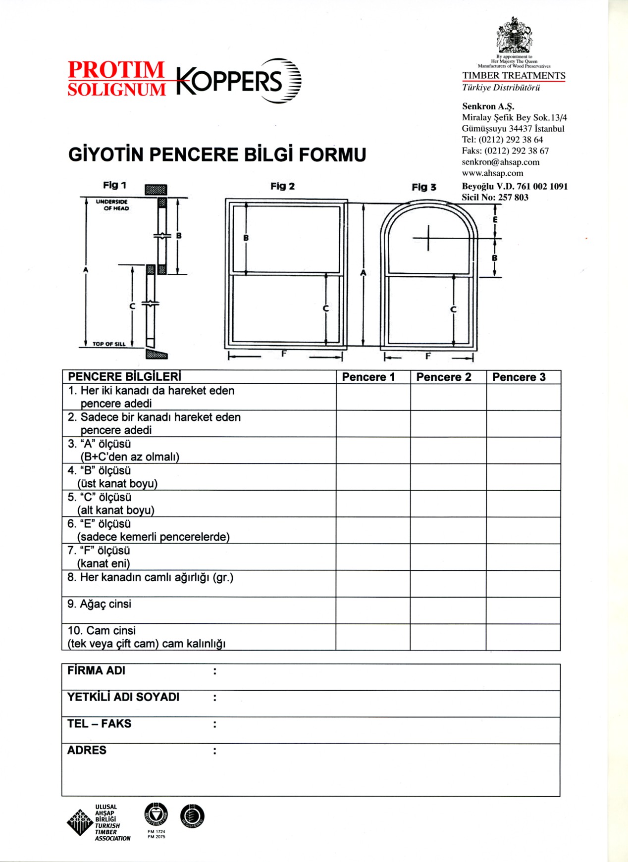 - Giyotin Pencere Mekanizma Bilgi Formu