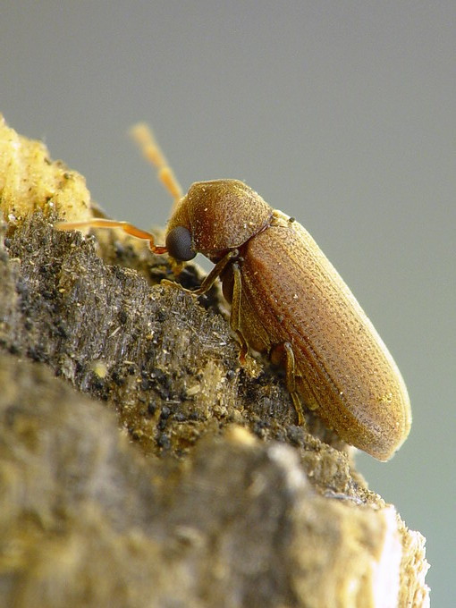 Rutubetli şartlarda kullanılan, çürümüş, yumuşak ve sert ahşapta görülür. Havalandırma imkânı az olan yer döşemeleri, mahzenler, kilerler ve rutubetli zemin ya da duvarla temasta olan yerlerde kullanılan ahşap özellikle hassastır. Yukarıda sayılan şartlarda kullanılan kontrplaklara da arız olurlar. Larvaları ağaç malzemede liflere paralel yönde çok sayıda tüneller açarlar. Tüneller çoğunlukla odun yüzeyine açılır. Pupa devresinden sonra malzemeyi terk ettiklerinde açtıkları uçma delikleri küçük, yaklaşık 1 mm çapında olup, deliklerin kenarı düzgün değildir. Ergin böceğin görünümü, mobilya böceğine benzediğinden, teşhiste dikkat edilmelidir. Sağlam kuru ahşabı tahrip etmediklerinden rutubet kaynağı kaldırılır ve mantarların arız olması önlenirse önkoruma işlemlerine gerek yoktur.